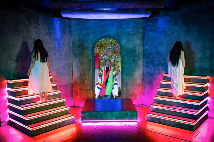 Similarly, in lost | born in translation (2022-2023), Ryu brings forward the metaphorical ghost of Korea’s mythology, translating the narrative of the forgotten goddess Mago. Mago, the goddess of creation, was recorded in the Silla Empire (57 BCE - 935 CE) but was replaced with a patriarchal origin fable during the Joseon empire. Ryu researches how these political erasures echo in personal pasts, often conflating documentary and science fiction to showcase the warped nature of time in migrational storytelling.