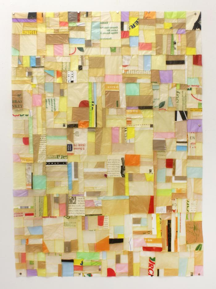 As a child, I was introduced to Jogakbo by my aunt, who was talented in traditional Korean arts. Her sophisticated Jogakbo, (traditional Korean wrapping cloths) were sometimes gifted to family members. It was one of these beautiful pieces that inspired me to update this unique art form and increase the scale, by stitching together pieces of commercial plastic bags collected in New York City and Seoul. I have also produced large-scale Jogakbo banners, using vinyl, which have been installed in New York City parks.
