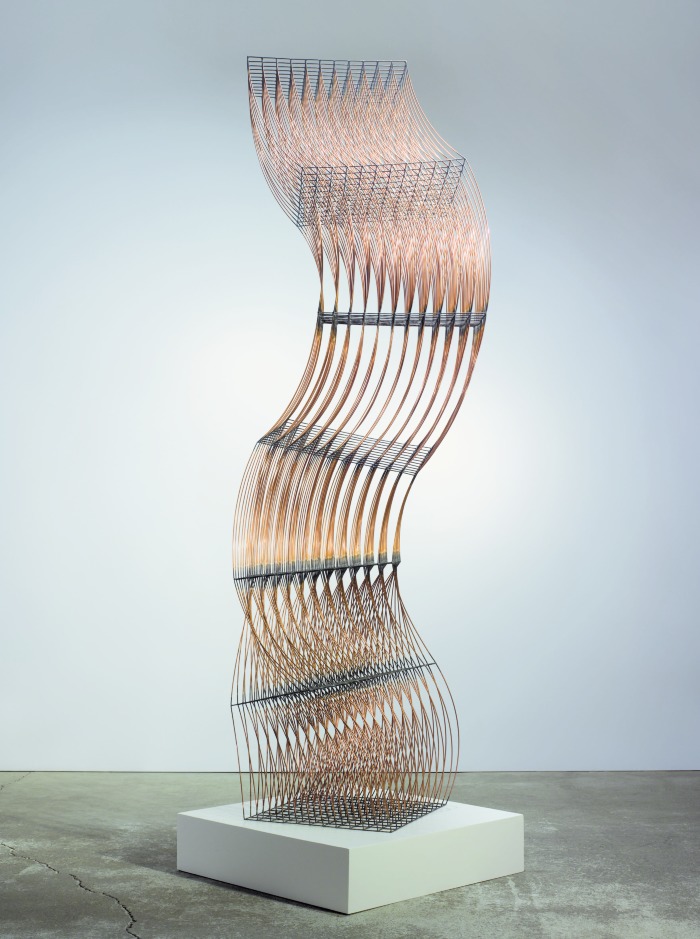 I rarely begin with a specific end in mind. In fact, I really don't want to know what the work will look like when I'm finished. Hopefully, after a process challenging my imagination and tenacity to persevere, I will have grown a little and reached some part of unknown depths or sensibilities that I did not have when I started. The geometry of music and nature are my major sources. (July 2016)